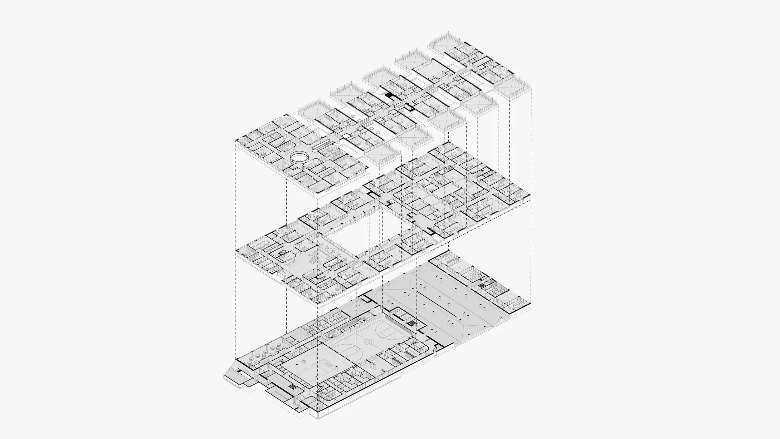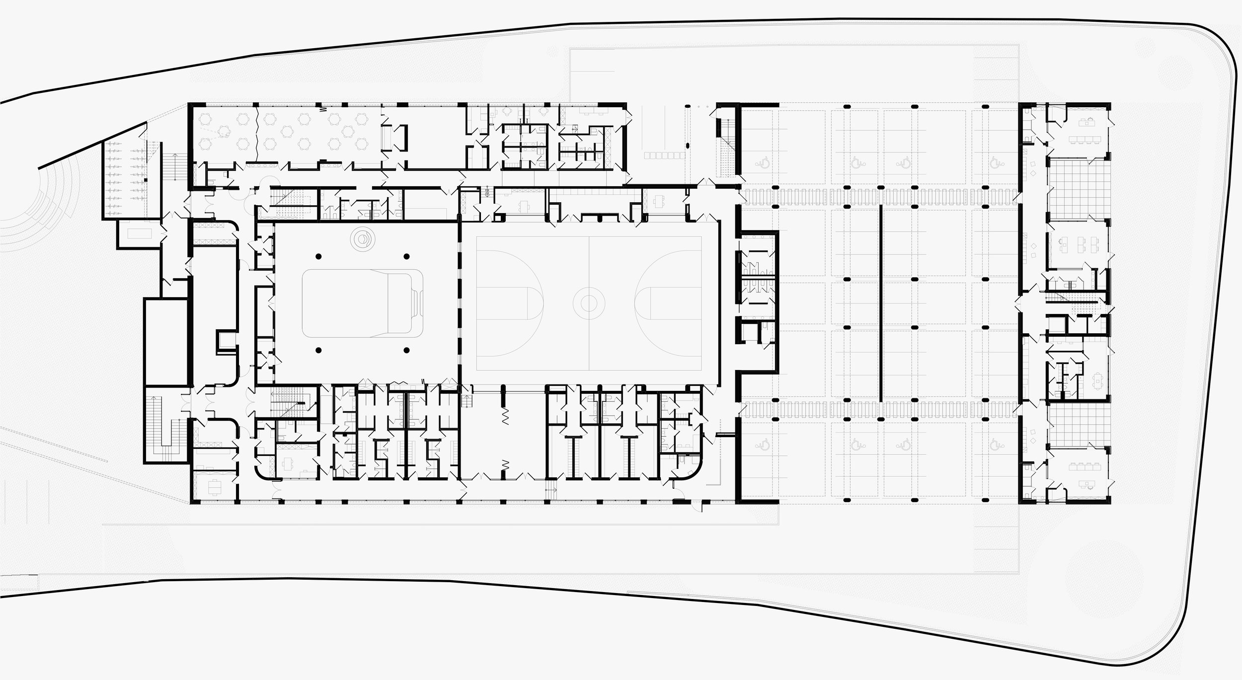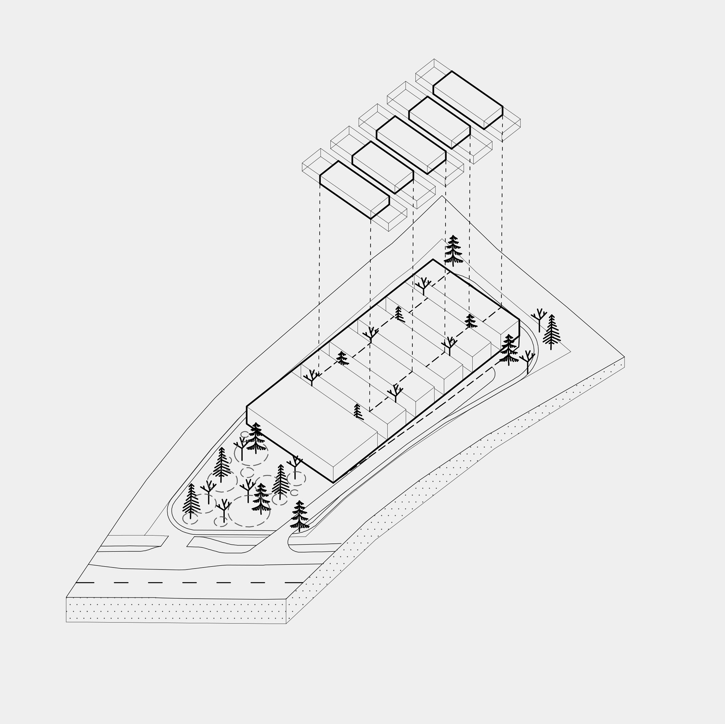 Zamišljena je niska dvojna struktura koja prekriva središnji dio parcele. Unutar nje formirani su atriji, čime se odgojni proces olakšava smanjenjem distrakcija. Veličina kompleksa dovodi se u mjerilo prikladno okruženju i korisnicima te se omogućuje kvalitetna orijentacija svih unutarnjih jedinica.