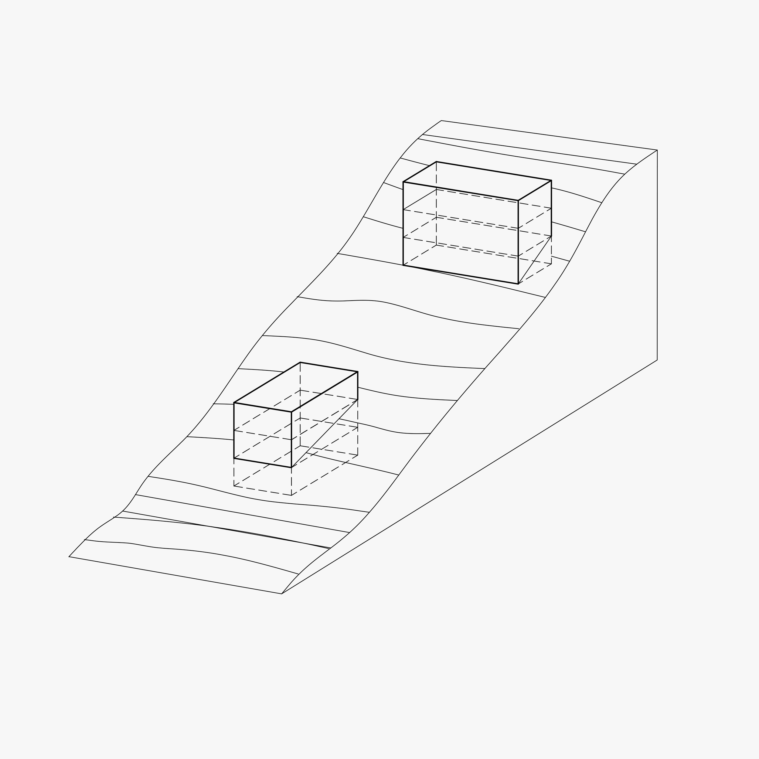 S obzirom na različite uvjete mikrolokacije, kuće su organizacijski potpuno drugačije no istog arhitektonskog izričaja, čime je stvorena oblikovna cjelina.