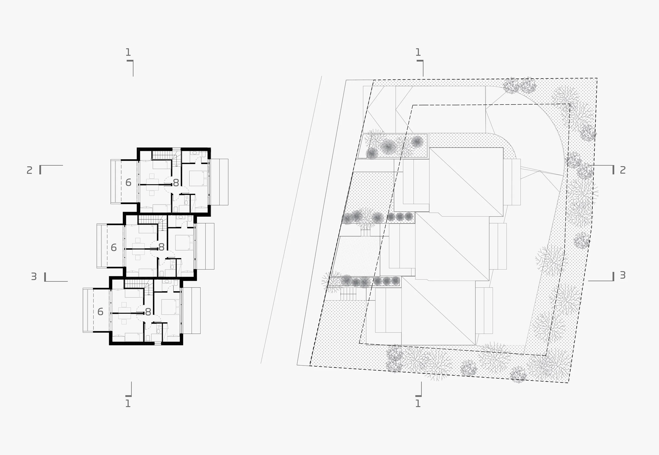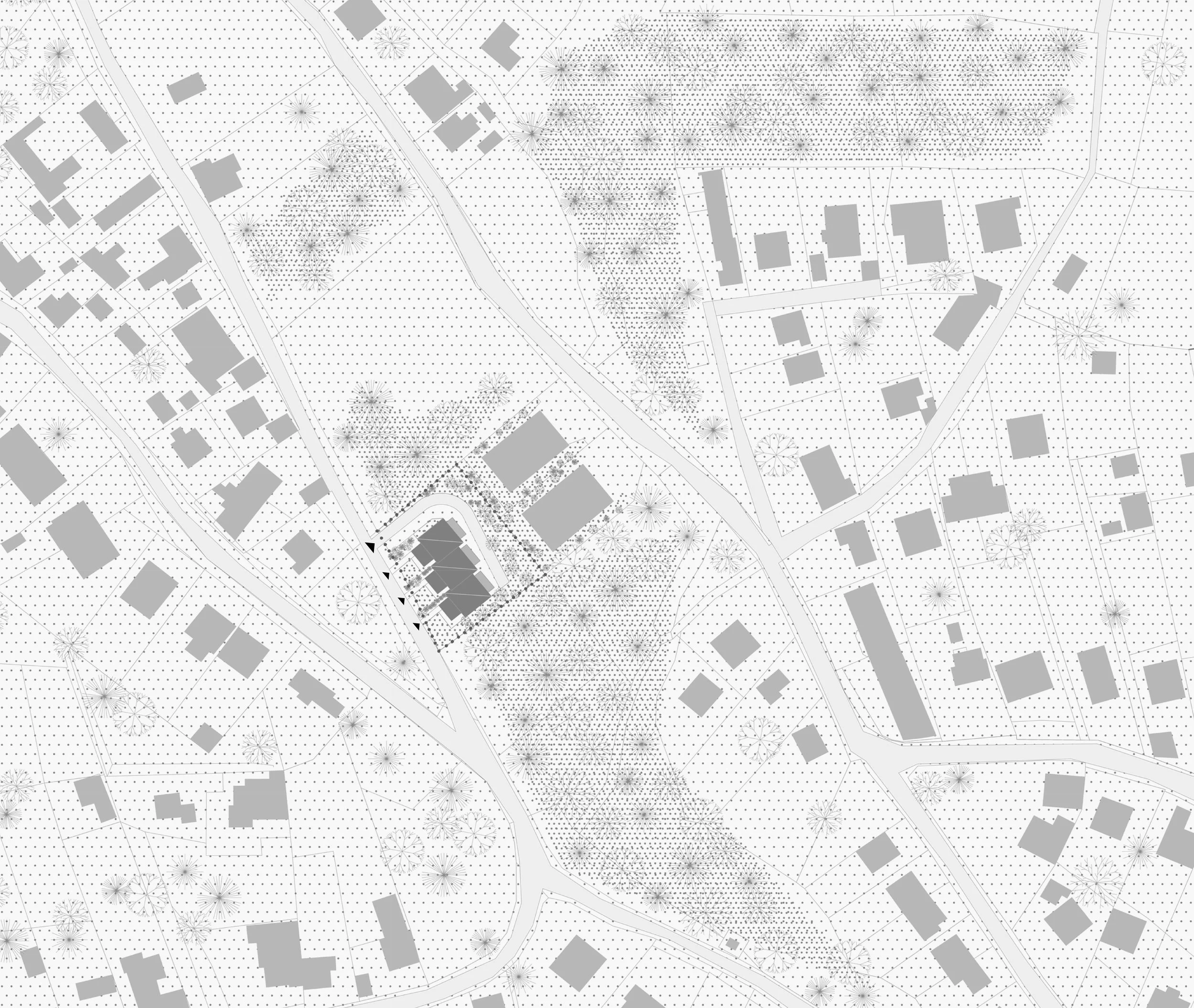 Volumeni su razlomljeni i kaskadno izmjereni kako bi se izbjegla monolitnost te zadržala mjerila pojedinačne obiteljske kuće.