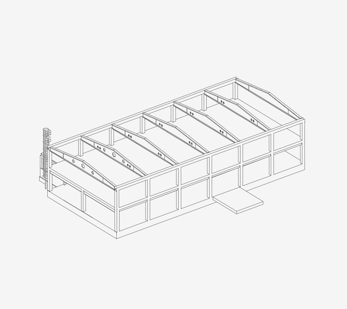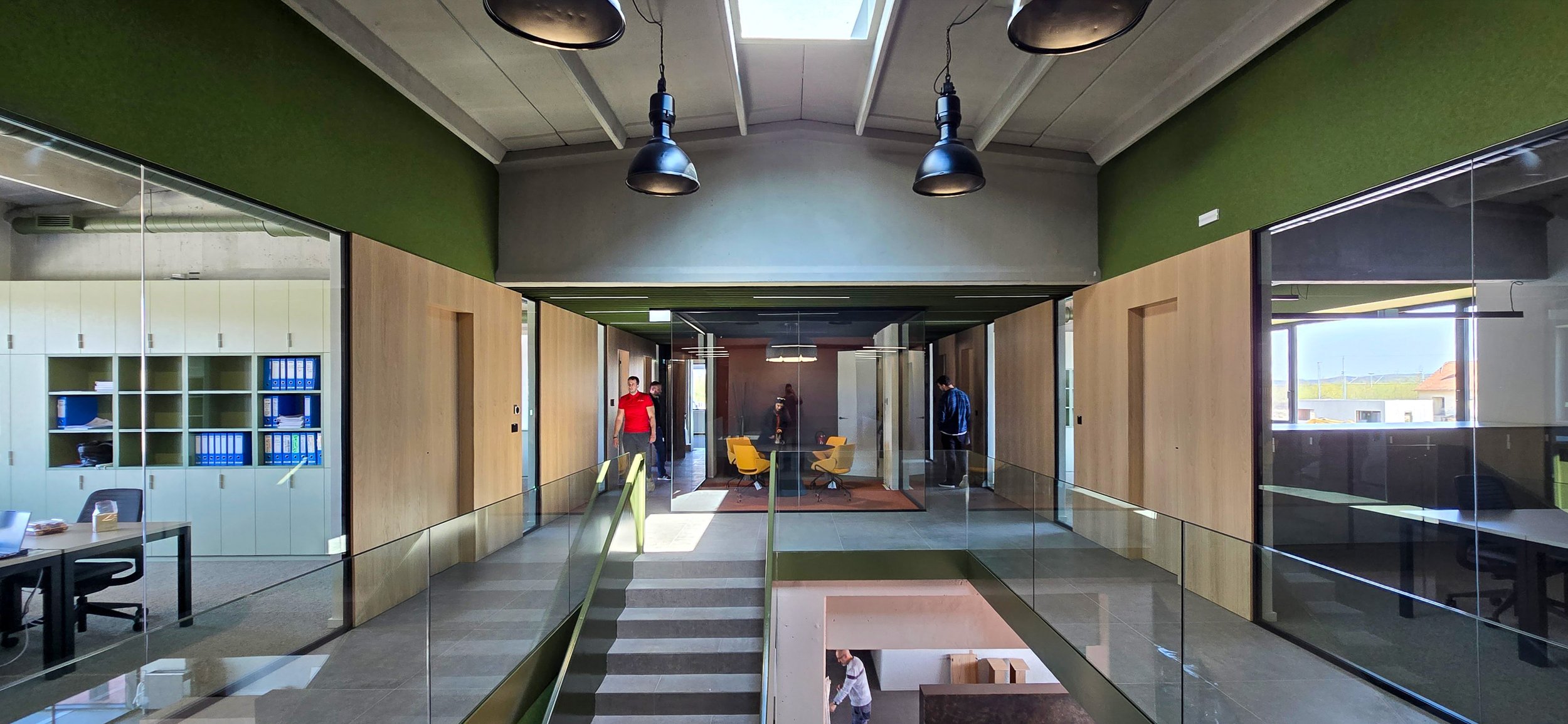 Projekt predstavlja transformaciju postojeće industrijske strukture u suvremeni radni prostor koji zadržava konstruktivnu iskrenost i preciznost izvorne arhitekture. Minimalnim intervencijama, promišljenom upotrebom prefabriciranih elemenata i discipliniranom materijalizacijom, zgrada dobiva novi život bez gubitka industrijskog karaktera – funkcionalno, jasno i prilagodljivo rješenje dosljedno kroz vrijeme.