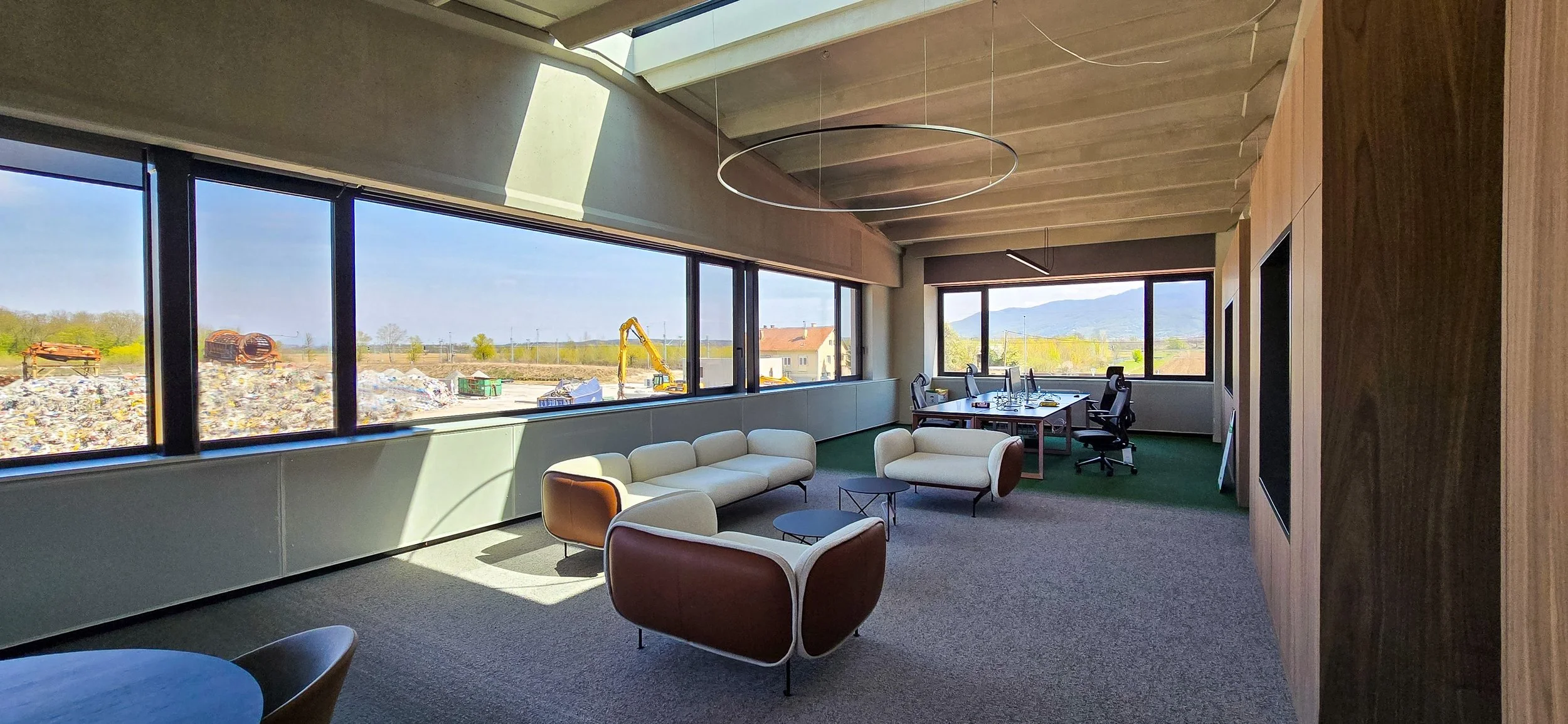 Zgrada je smještena u industrijskoj zoni Zaprešića, unutar područja gospodarenja otpadom, okružena željezničkom prugom, pristupnim prometnicama i operativnim platoima. Takav kontekst zahtijeva arhitekturu koja je jasna, funkcionalna i reducirana na bitne elemente.